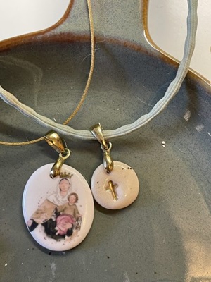 Si prefieres una opción sin lustre de oro también tenemos la medalla de la cruz blanca de cerámica con el estampado de la cruz