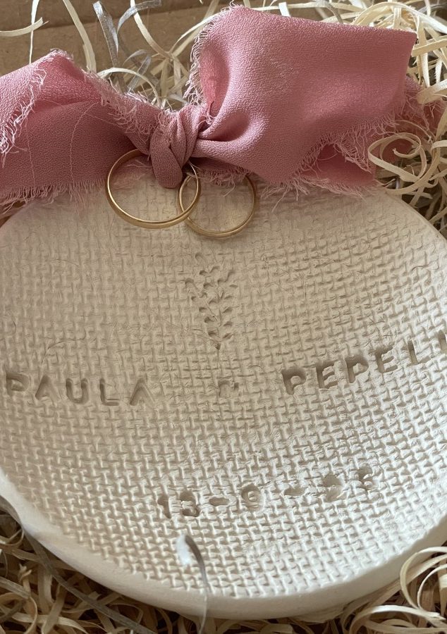 Este objeto no es solo funcional el día de la boda. Tras la ceremonia, el plato puede convertirse en un elemento decorativo cargado de significado: colocado en la mesita de noche, en el tocador o en una vitrina, recordará siempre aquel instante en el que dijiste “sí”. Algunos de nuestros clientes incluso lo utilizan como soporte para sus alianzas cuando no las llevan puestas, reforzando así su valor simbólico día tras día.